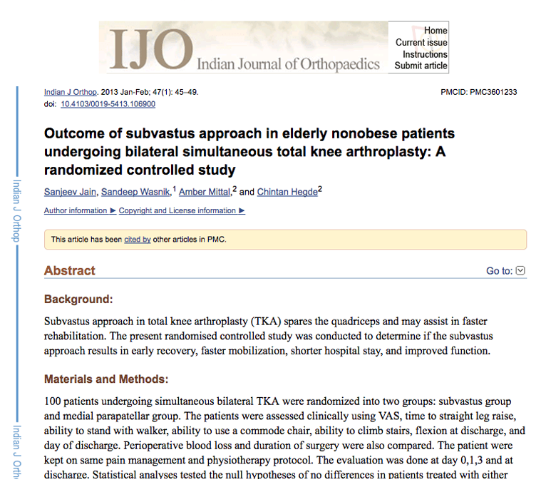 The quadriceps strength is better in subvastus group as evidenced by early ability to climb stairs and use commode chair. This faster rehabilitation can also be attributed to less pain in subvastus approach group as the quadriceps mechanism remains intact. Other advantage of subvastus approach was shorter hospital stay, which significantly cuts down the expenses for the patient (approx. 10-15% less in our hospital) and add to overall patient satisfaction. Find Here Minimally Invasive Knee Replacement in Andheri.